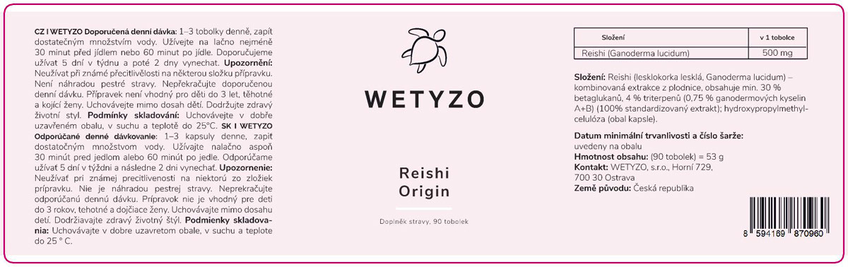 Proto u WETYZO Reishi vždy najdete jasnou standardizaci: minimálně 30 % beta-glukanů a 4 % triterpenů – hodnoty ověřené laboratorními testy a doložené certifikáty.